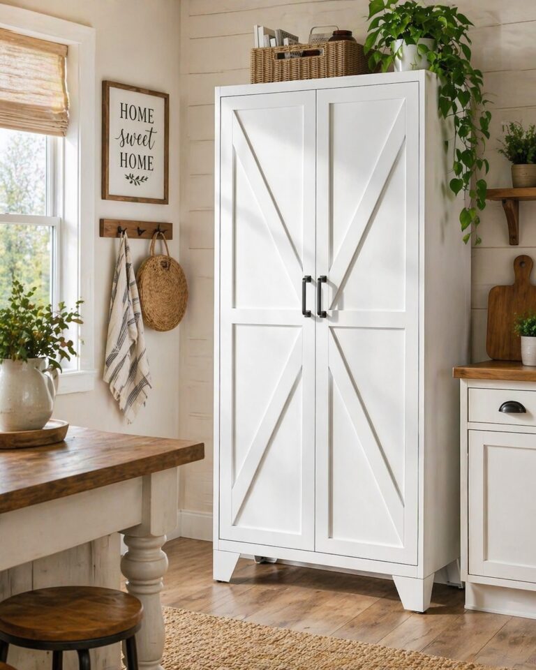 Tall White Metal Pantry Cabinet and Storage for Organized Spaces
