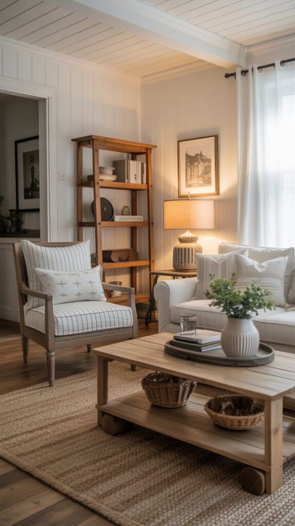 4. Farmhouse-Inspired Living Room with Vintage Finds