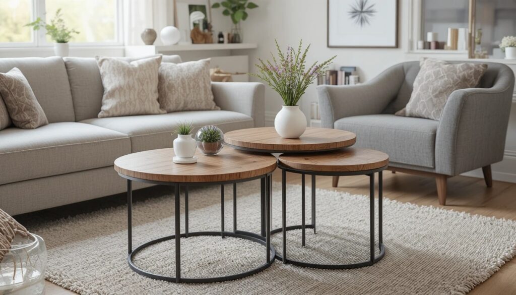 Round coffee tables improve flow and reduce sharp corners, making them ideal for tight layouts and high-traffic areas.